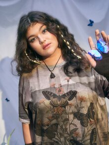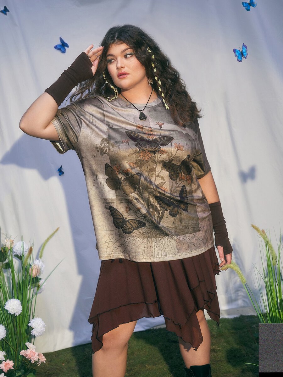 Fairycore Plus Butterfly Print Drop Shoulder Tee