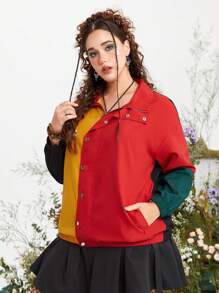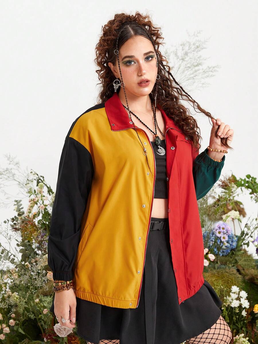 Fairycore Plus Colorblock Drop Shoulder Jacket