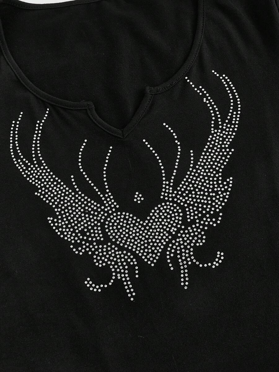 Fairycore Plus Rhinestone Heart & Wings Pattern Notched Neck Tee