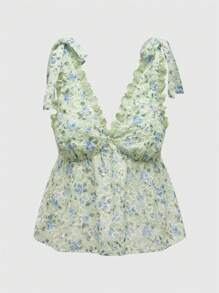 Fairycore Plus Size Floral Heart Contrast Lace Tank Top