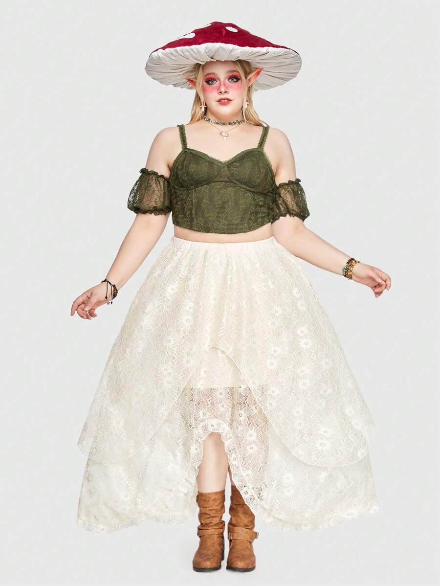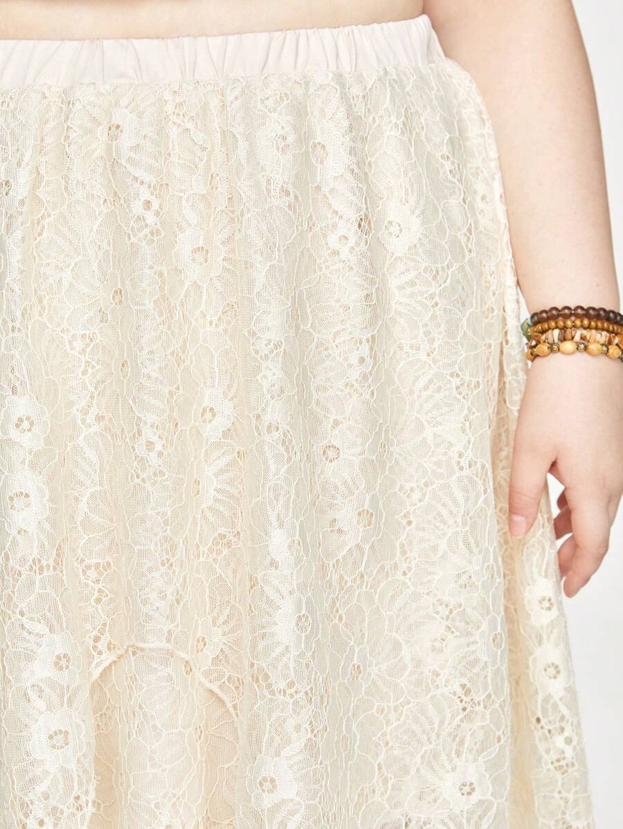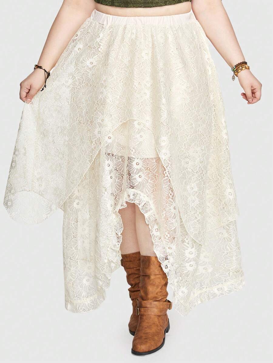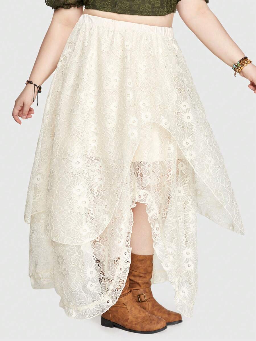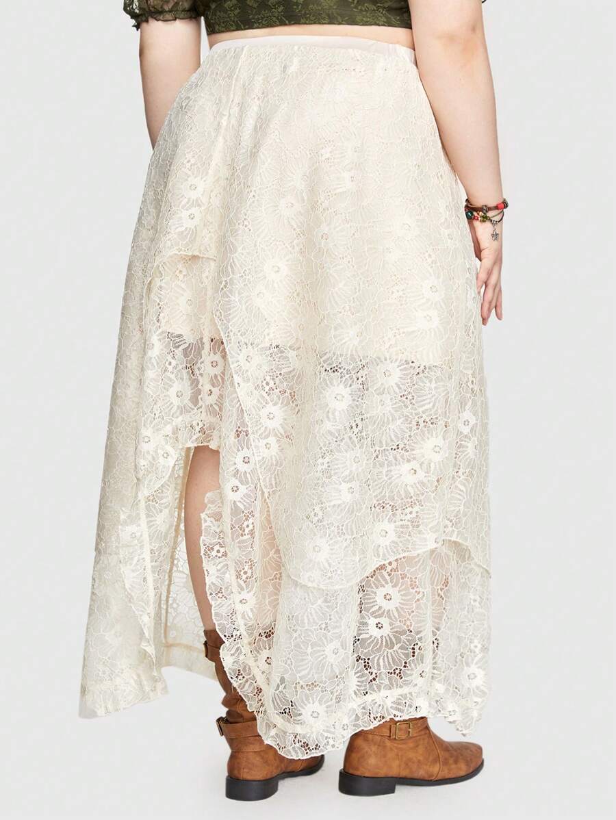 Fairycore Plus Size Elastic Waist Asymmetric Hem Lace Skirt
