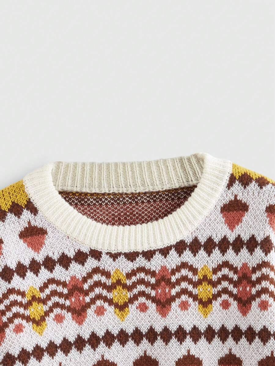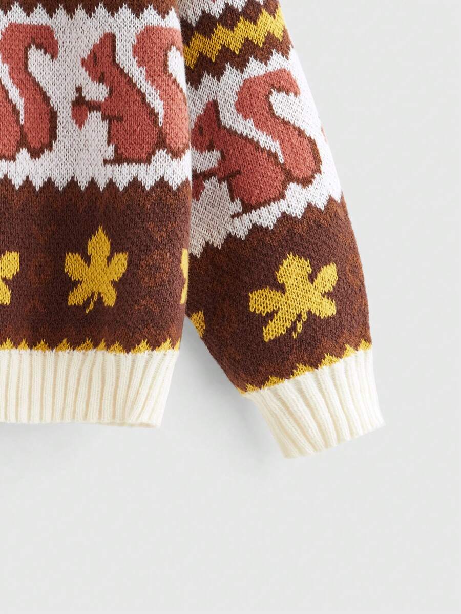 Fairycore Plus Size Women's Jacquard Cottagecore Style Squirrel & Maple Leaves Pattern Pullover Sweater