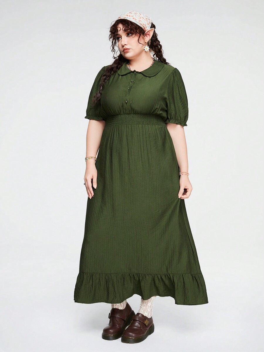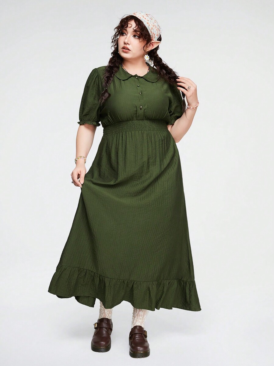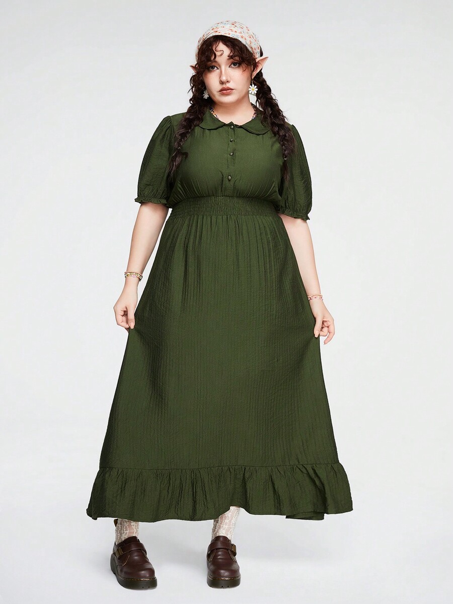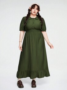 Fairycore Plus Size Women's Puff Sleeve Countryside Style Dress
