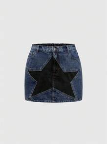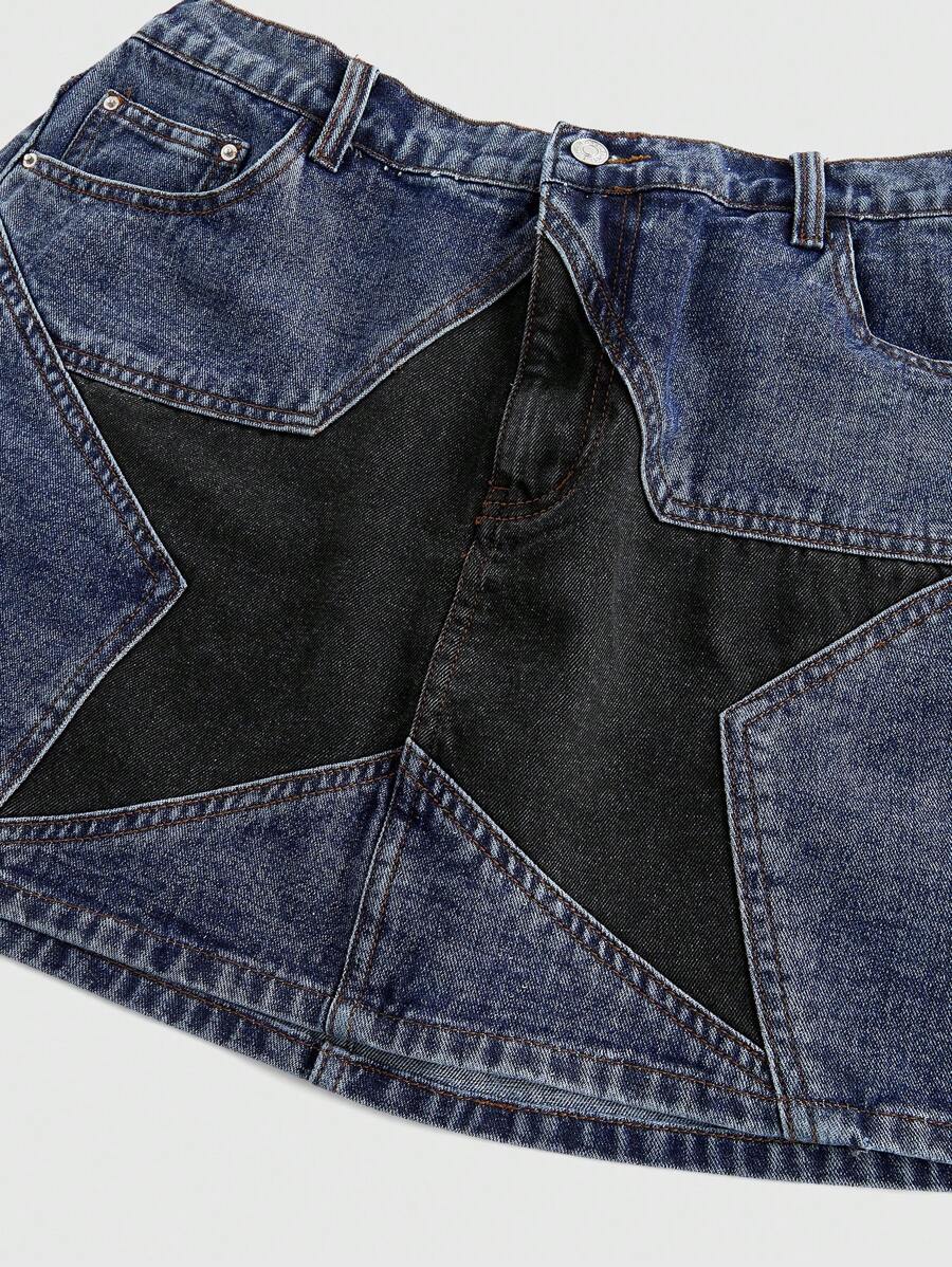 Fairycore Plus Size Y2K Style Star Pattern Color Block Denim Mini Skirt