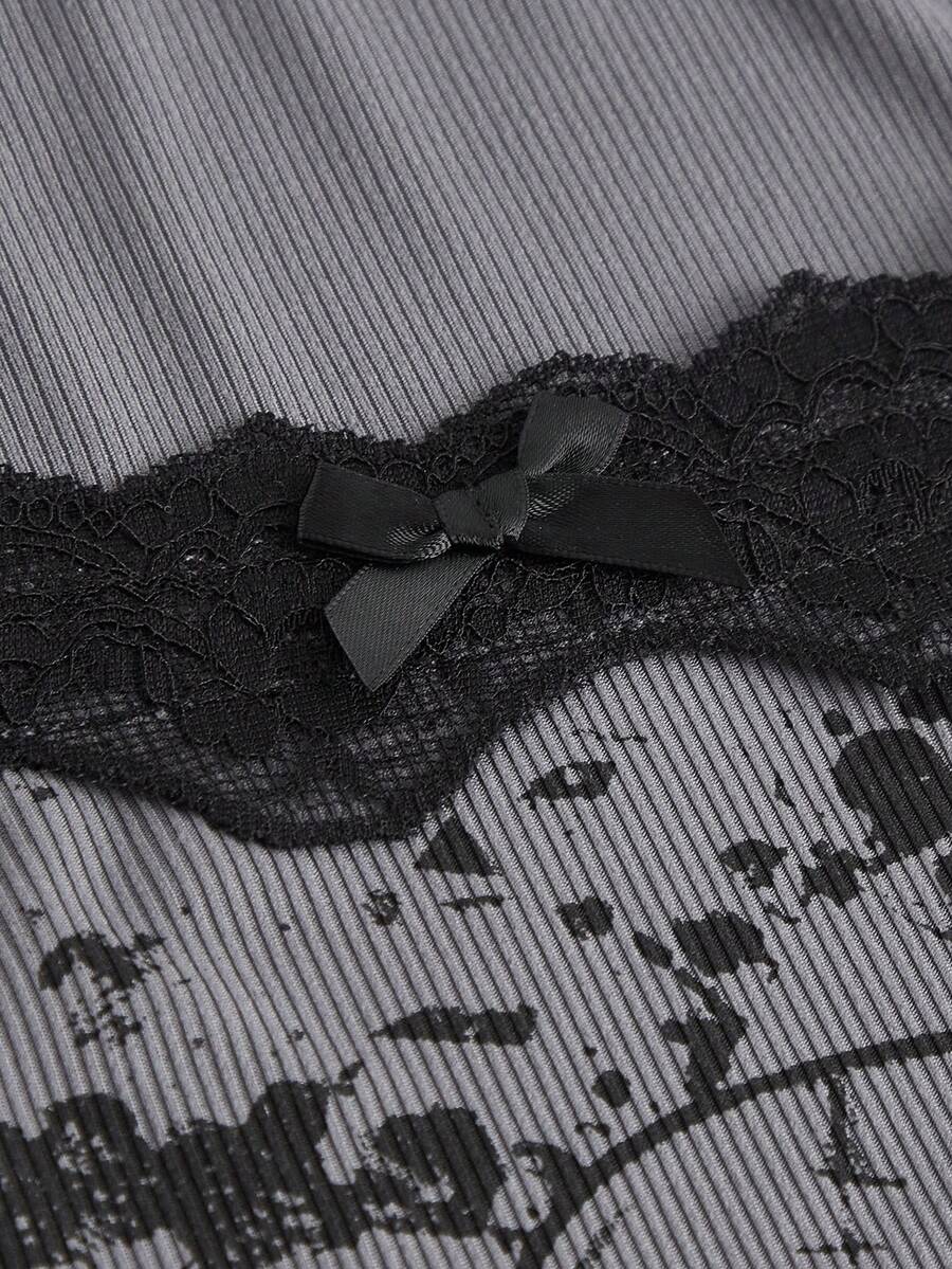 Fairycore Skull Pattern Splicing Lace T-shirt