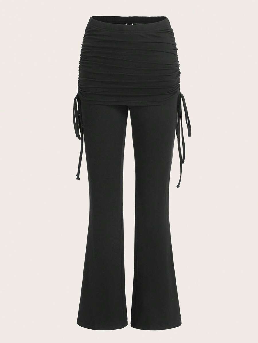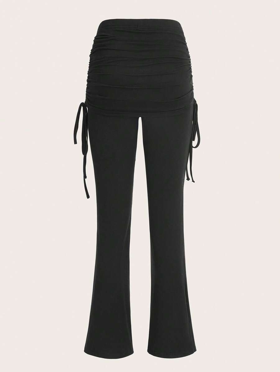 Fairycore Solid Drawstring Side Ruched Flare Leg Pants