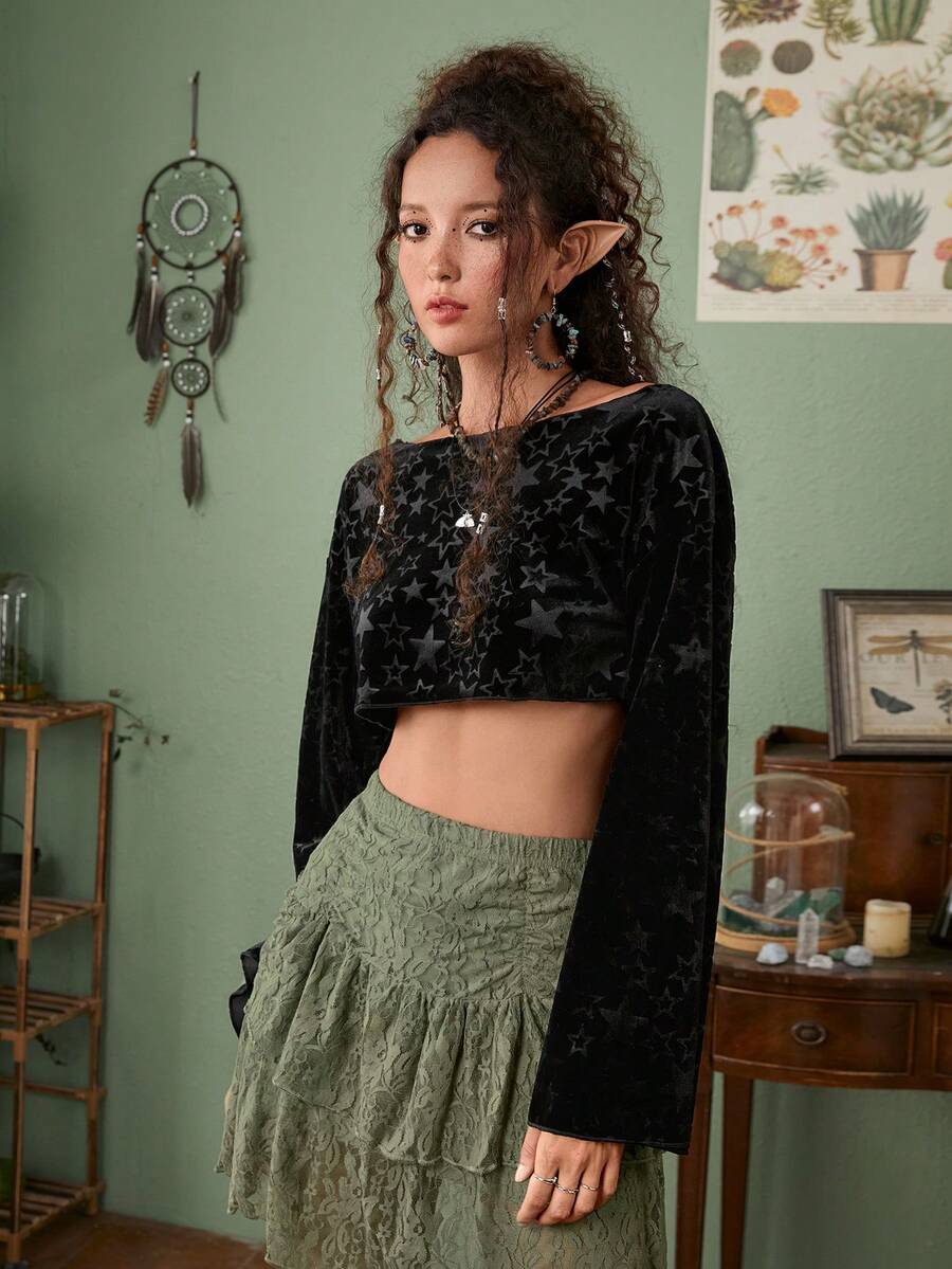 Fairycore Star Pattern Velvet Crop Tee