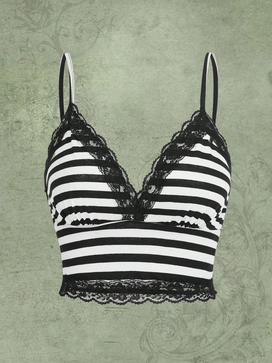 Fairycore Striped Contrast Lace Cami Top