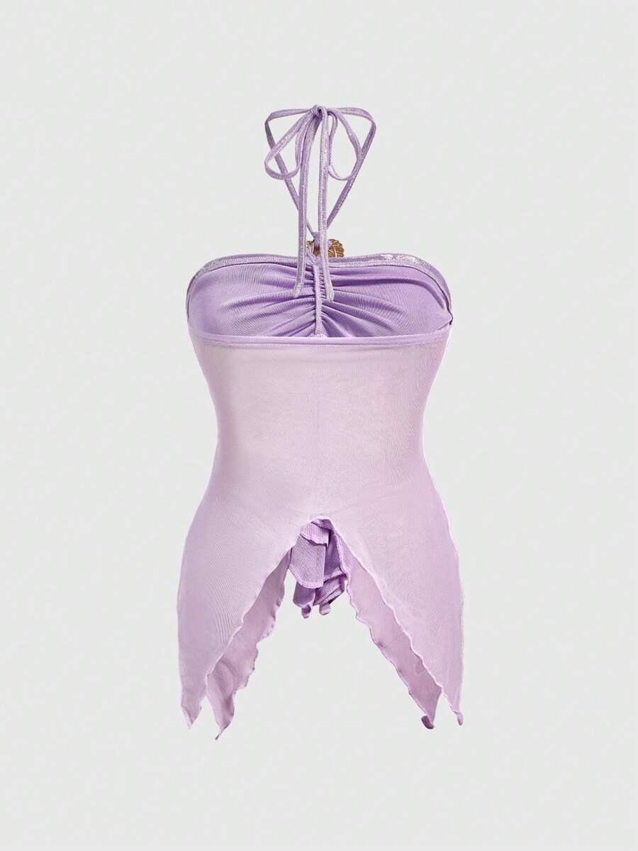 Fairycore Summer Ocean Shell Decor Asymmetrical Hem Women Tank Top