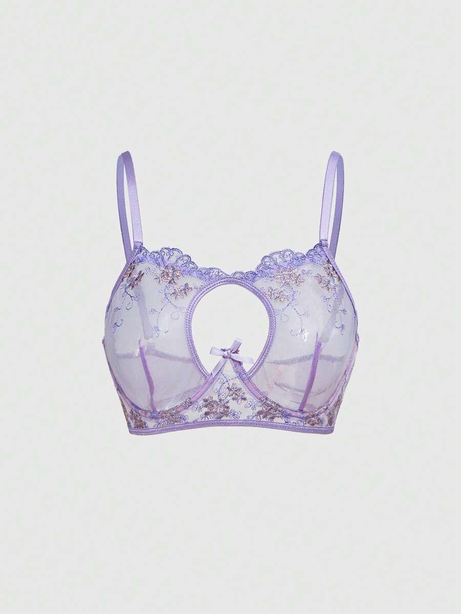 Fairycore Sweetheart Romantic Exquisite Embroidery Women's Sexy Underwire Hollow Bow Underwear 3-Piece Set