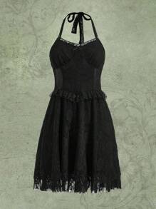 Fairycore Tie Backless Ruffle Trim Lace Dress