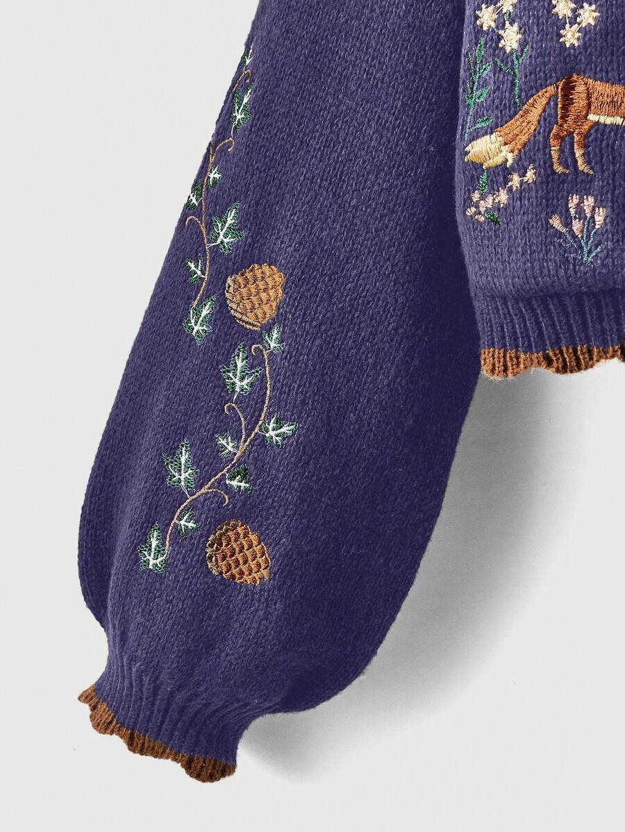 Fairycore V-Neck Contrast Trim Embroidery Button Front Casual Long Sleeve Cardigan