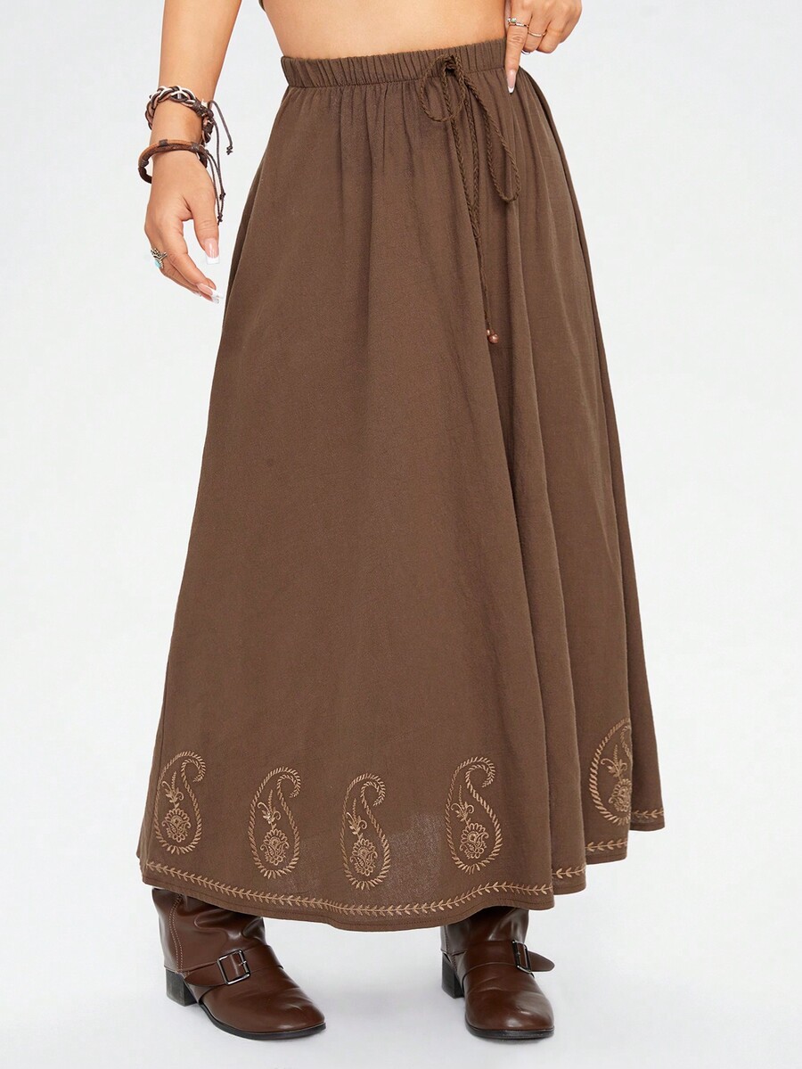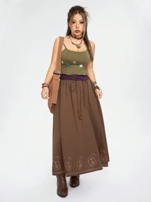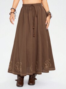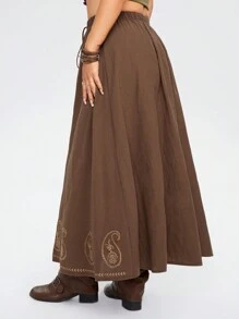 Fairycore Vintage Embroidered Beaded Waistband Skirt With Paisley Pattern