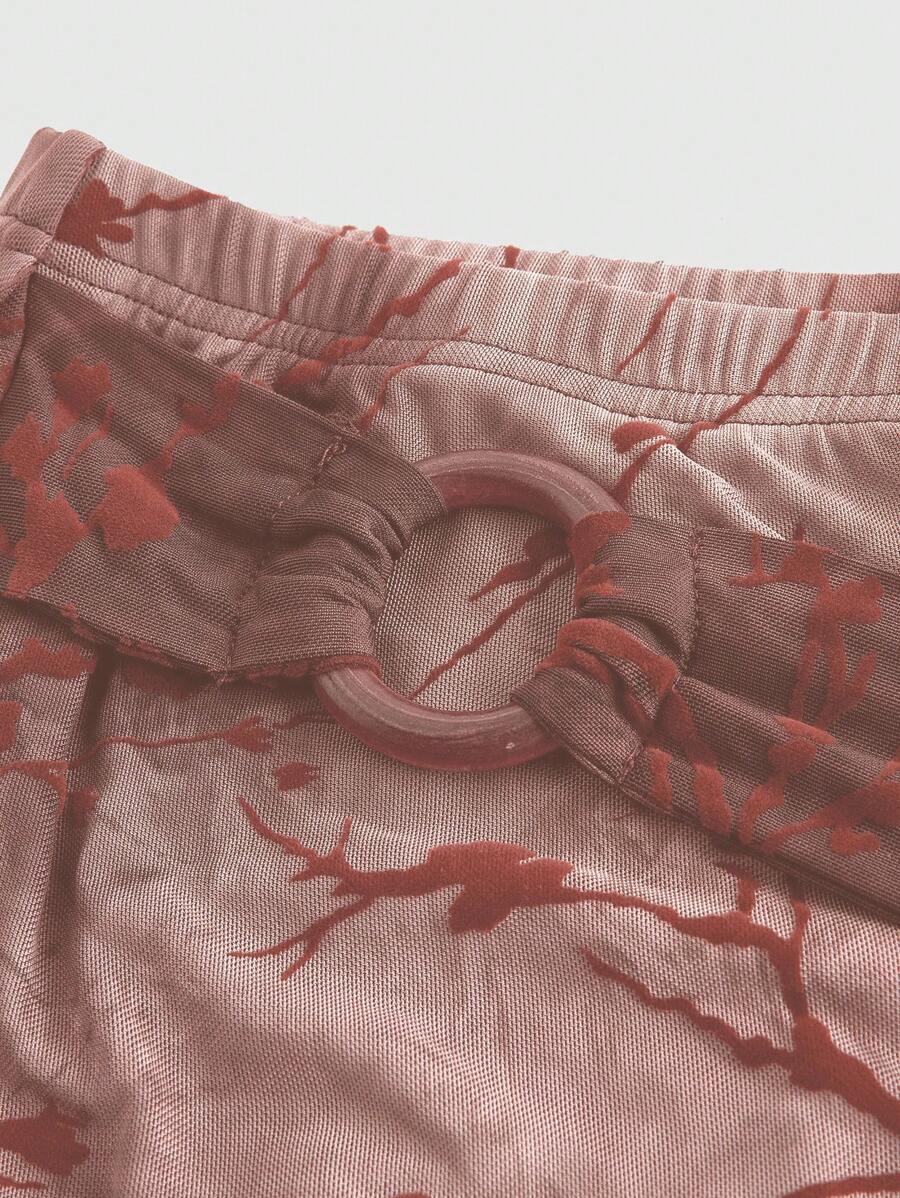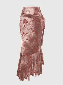 Fairycore Vintage Flocked Fit & Flare Skirt With Round Buckle Belt For Women