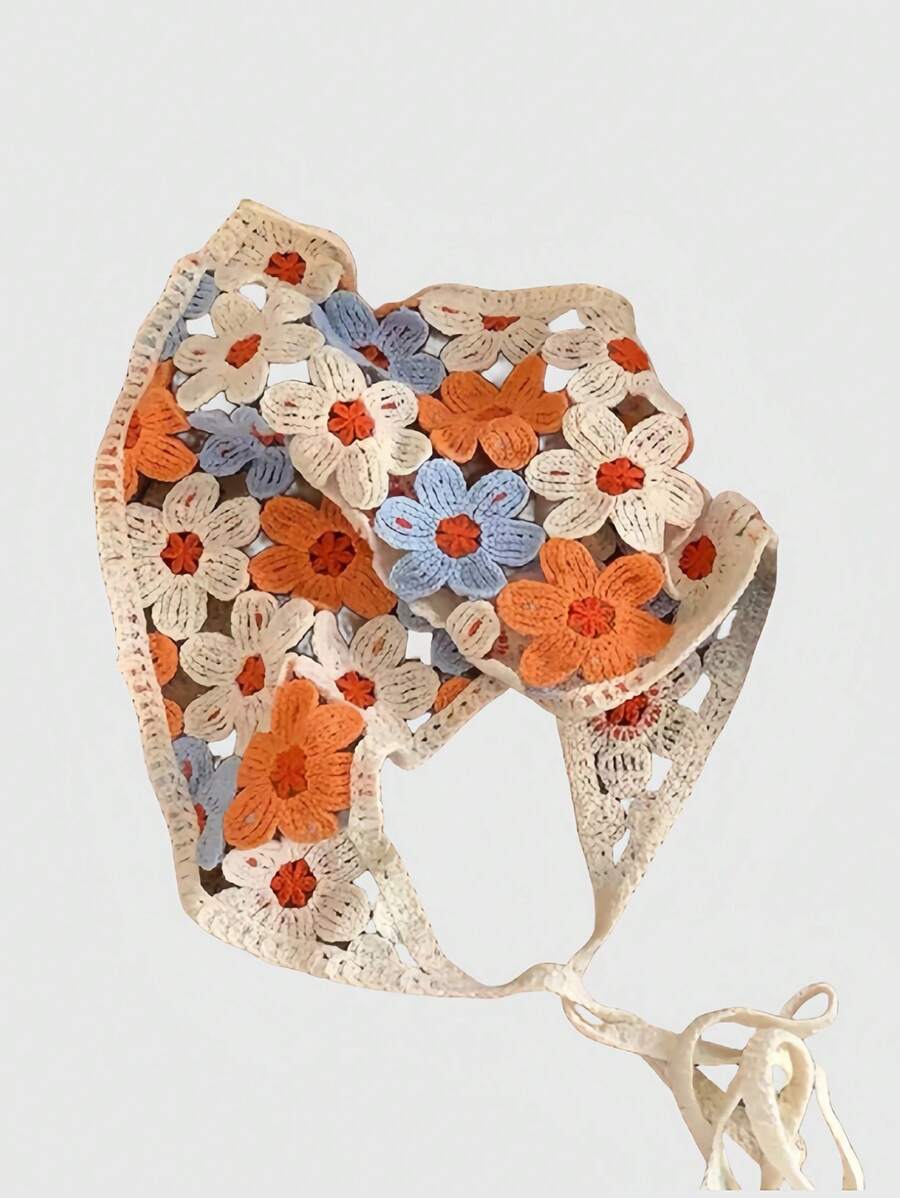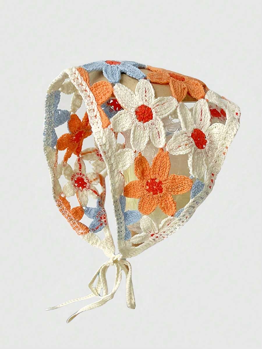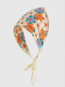 Fairycore Vintage Floral Print Lightweight Triangle Scarf For Women, French Style Headband, Photo Prop, Summer
