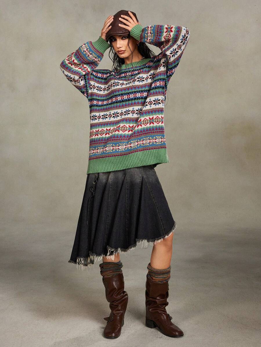 Fairycore Vintage Floral Print Oversized Women Sweater, Autumn/Winter