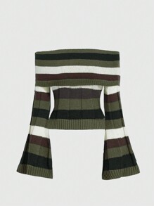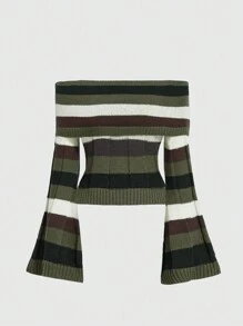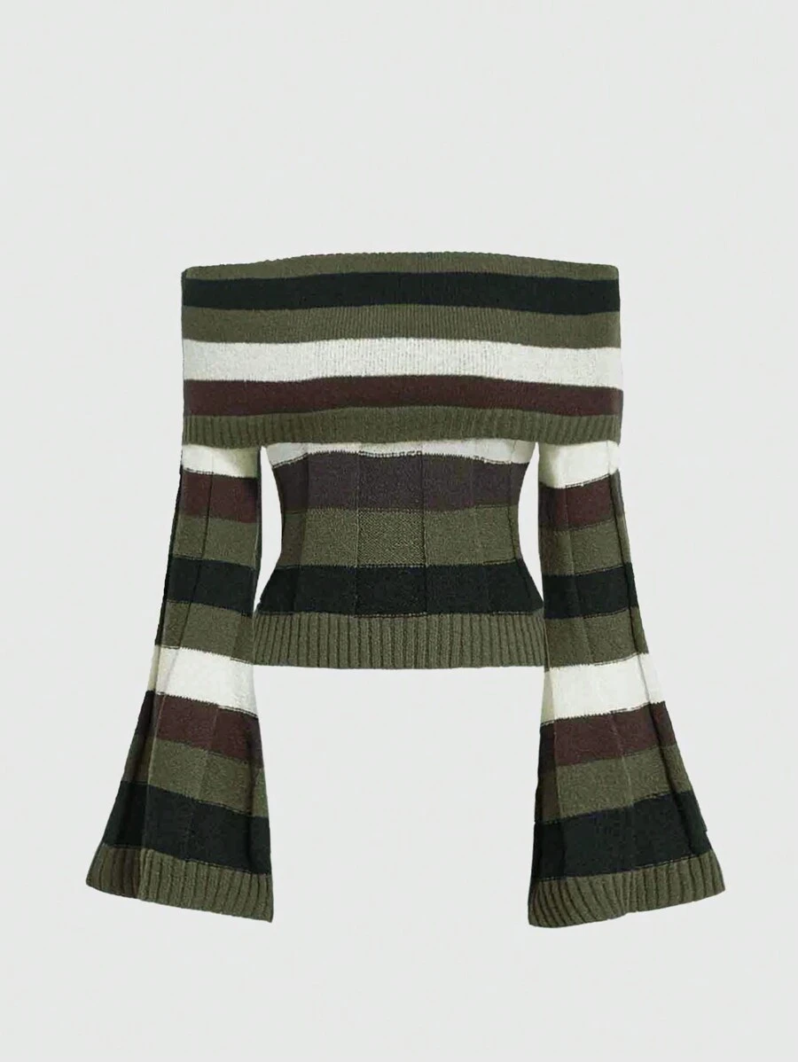 Fairycore Vintage Off Shoulder Striped Flared Sleeve Women Sweater, School