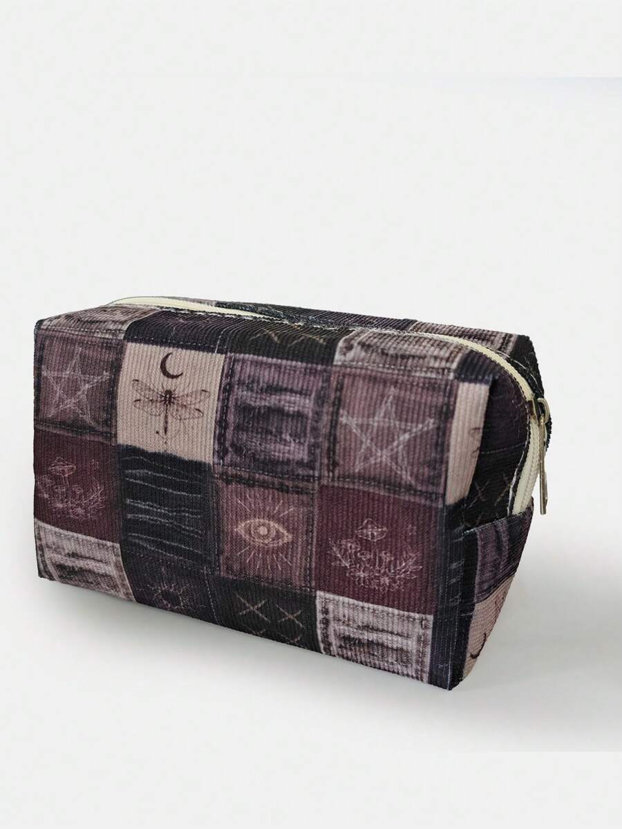 Fairycore Vintage Patchwork Pattern Octagon Velvet Cosmetic Bag