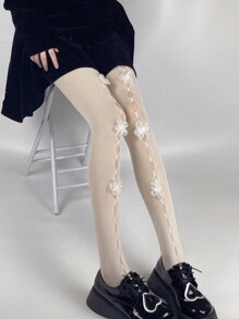 Fairycore Women 3D Flower Decor Stockings/Pantyhose/Tights