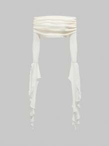 Fairycore Women Mermaid Series Strapless Off Shoulder Sheer Mesh Asymmetric Sleeve Crop Top, Summer Beach Vacation
