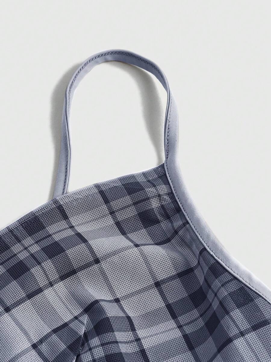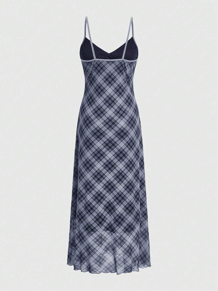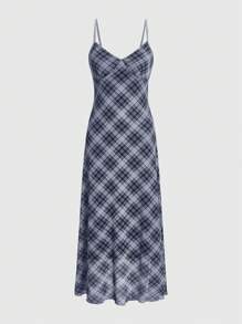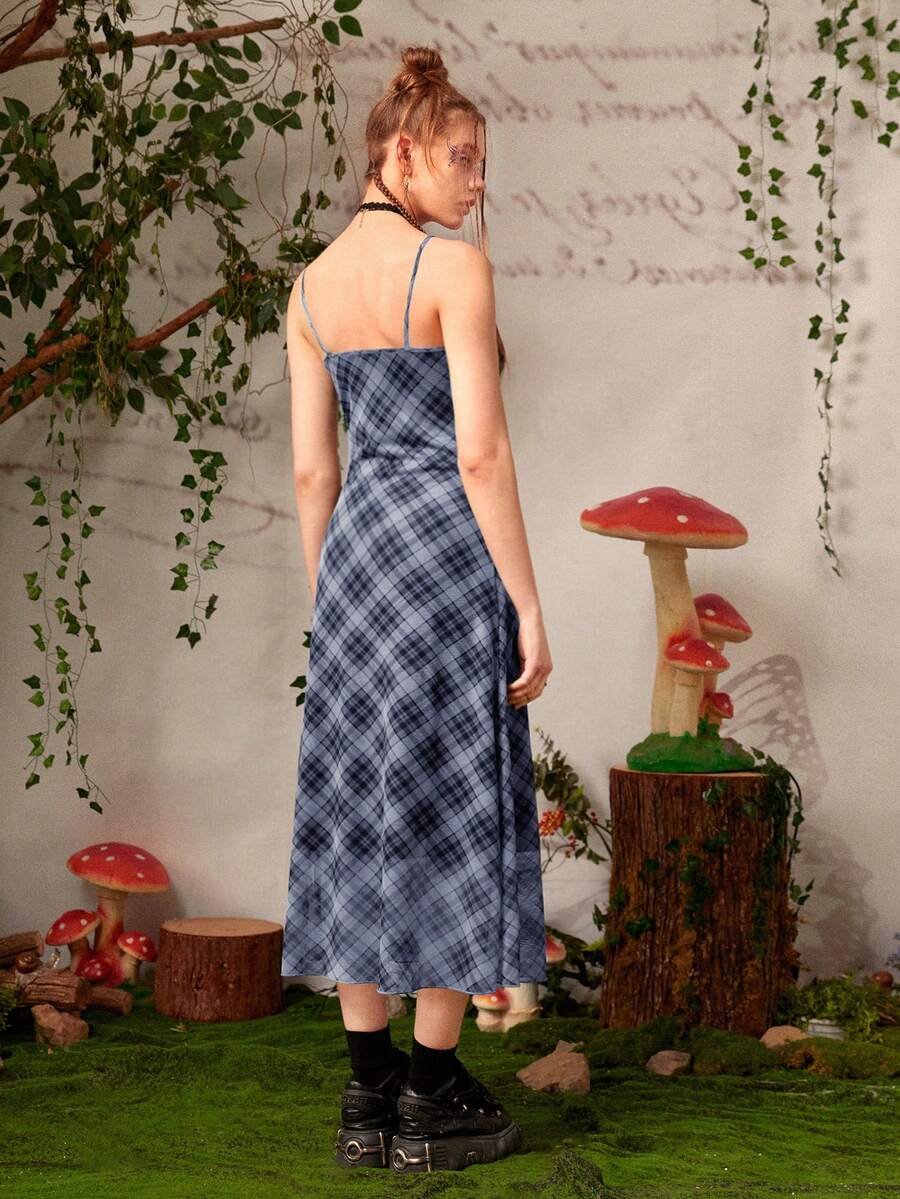 Fairycore Women Plaid Print Long Casual Slip Dress