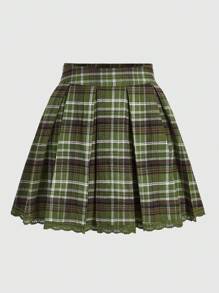 Fairycore Women'S Short Green Plaid Pleated Skirt