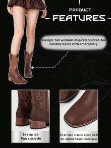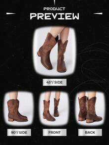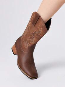 Fairycore Women Spring/Autumn Outdoor Fashion Embroidery Patchwork Pull-On Ankle Boots, Western Style Short Boots