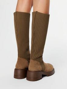 Fairycore Women's Brown Pull-On Elastic Ankle Boots, Fabric Dark Rock Party Dress Boots, Chunky Heel Goth Boots, Over-The-Knee Boots