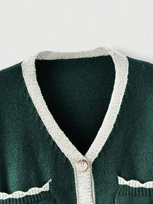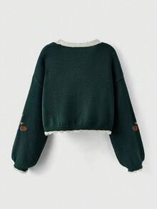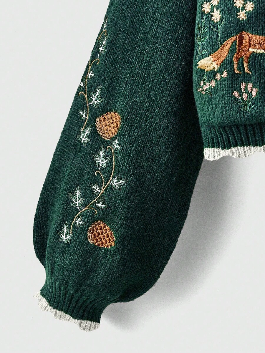 Fairycore Women's Casual Fox Embroidery Trim Button Front Cardigan, Autumn/Winter