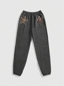 Fairycore Women's Casual Retro Y2K Leopard Print Pentagon Star Embroidered Sweatpants
