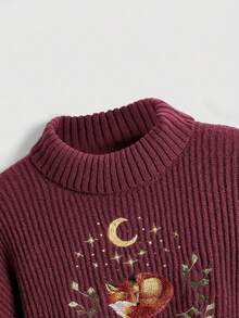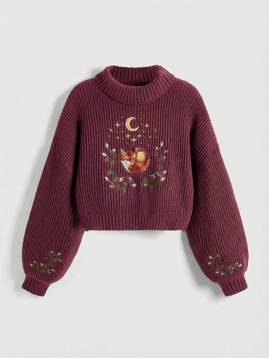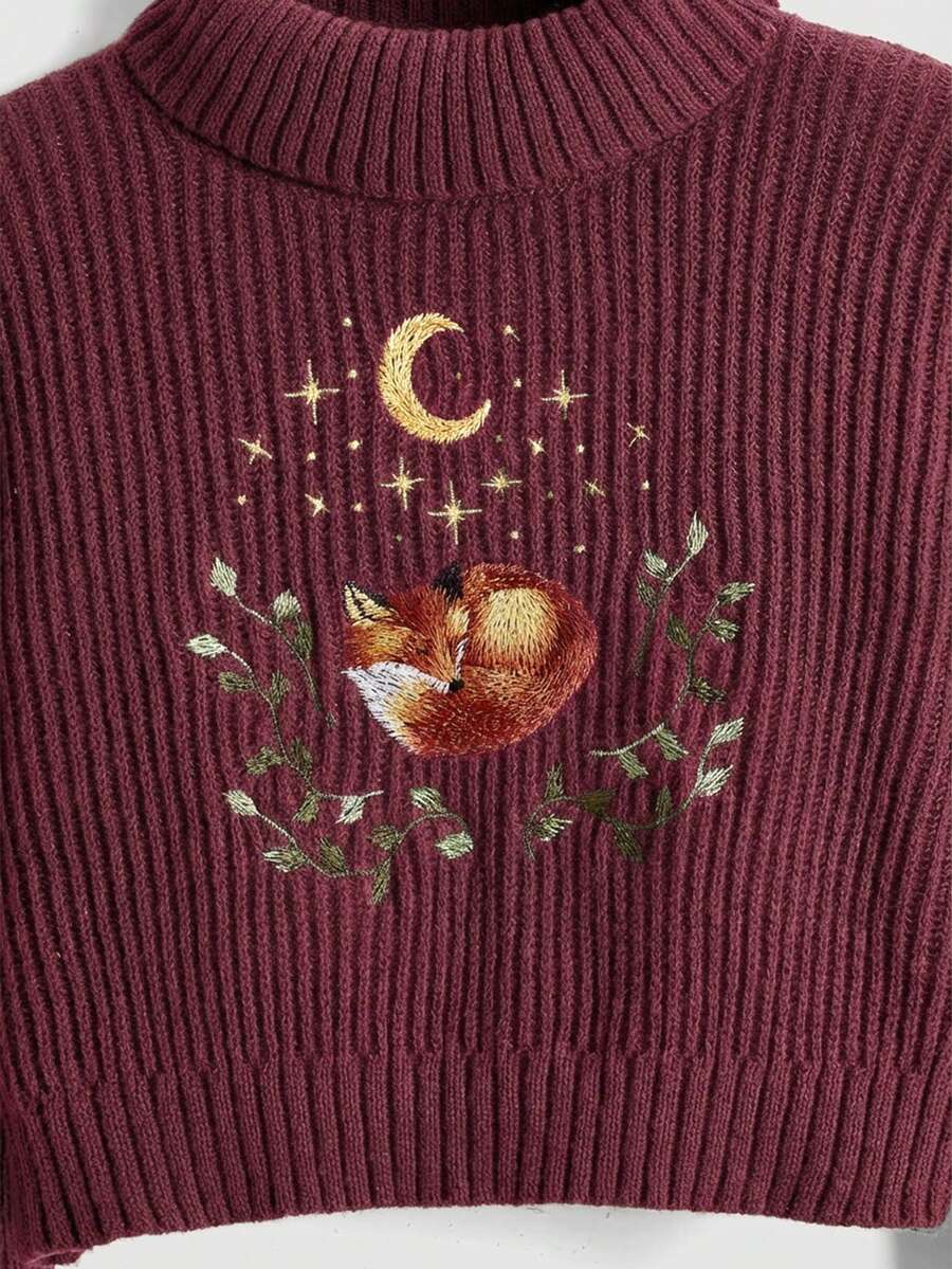Fairycore Women's Casual Versatile Commuting Fox Embroidery Pattern Turtleneck Long Sleeve Sweater, Suitable For Autumn/Winter