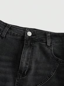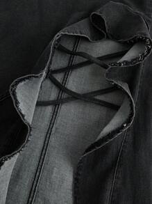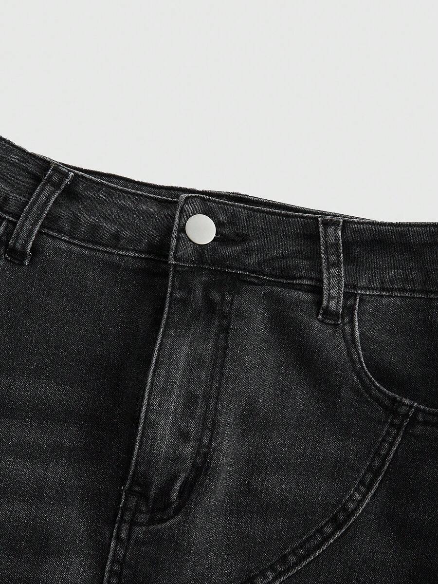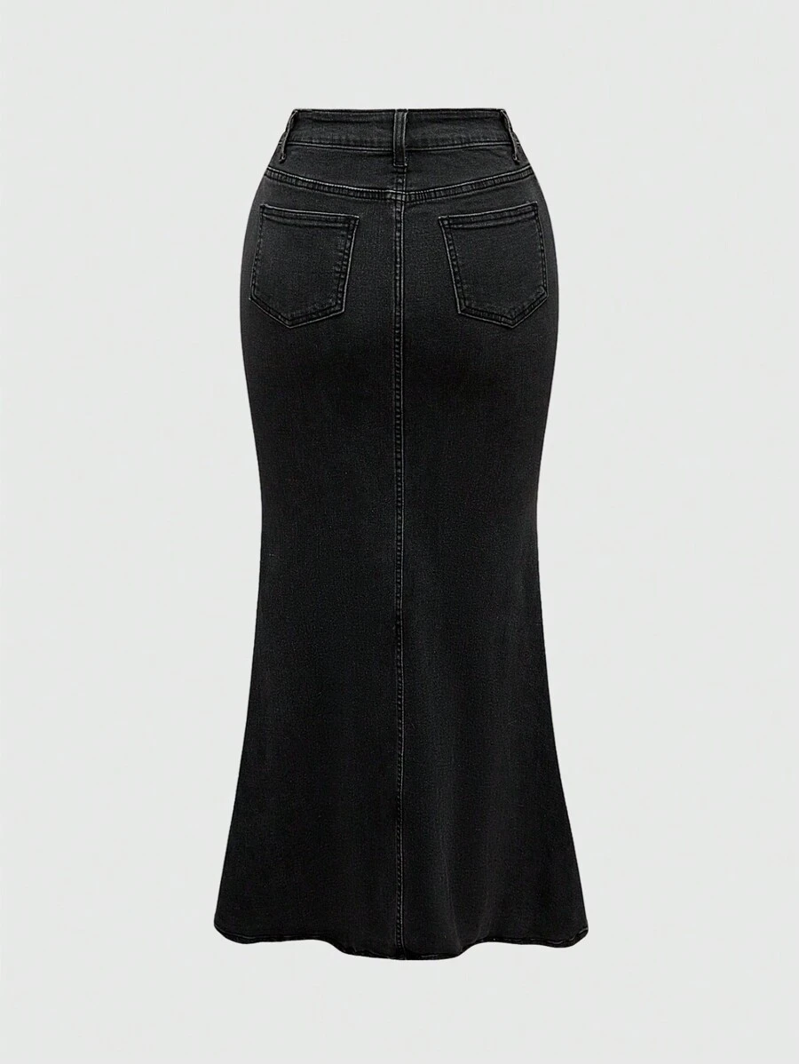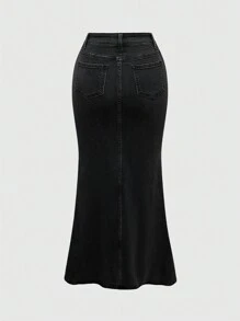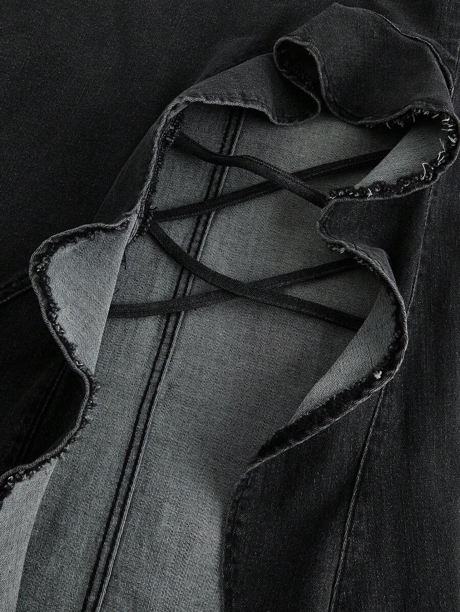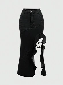 Fairycore Women's Denim Mini Skirt With Ruffle Hem & Side Slit, Sexy Style