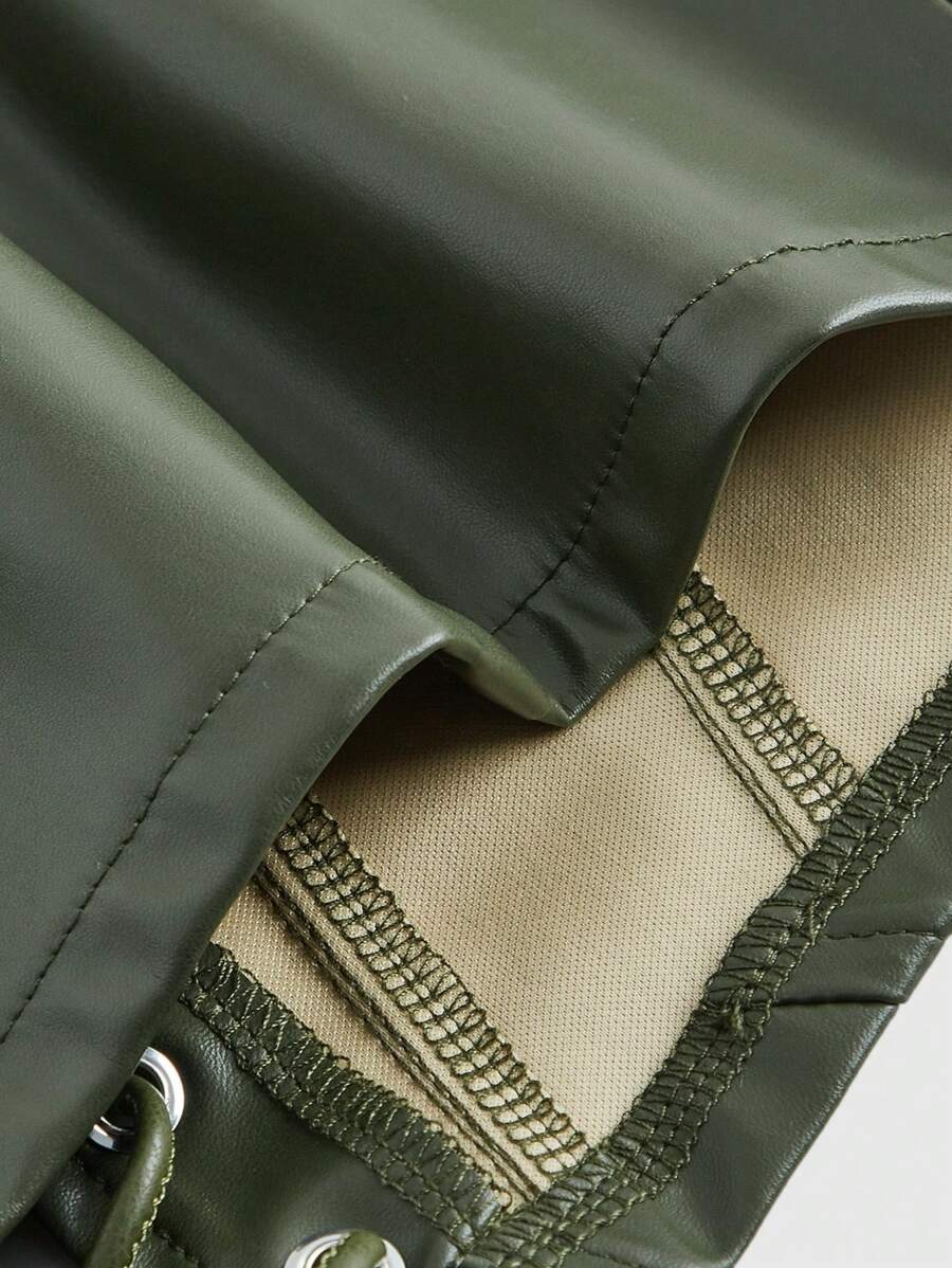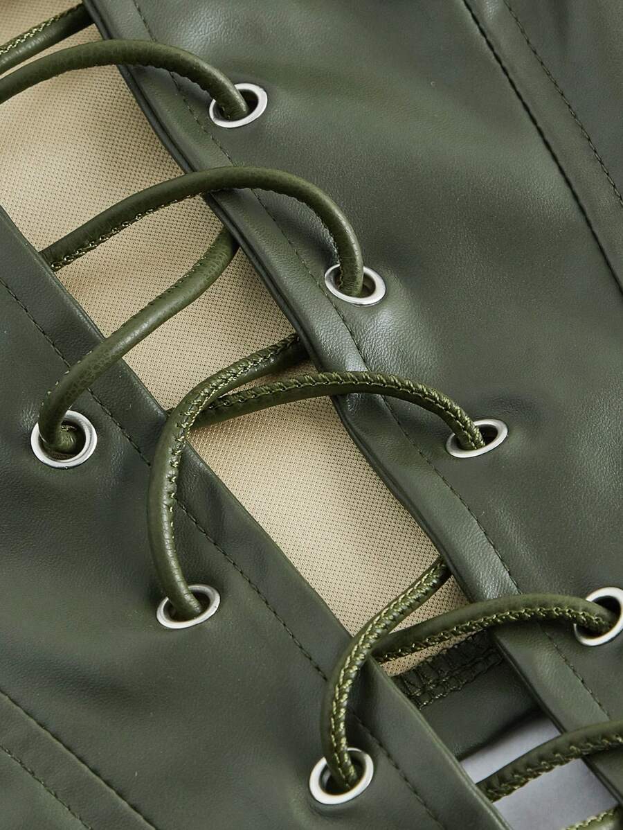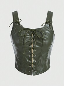 Fairycore Women's Eyelet Lace Up Faux Leather Tank Top For Summer