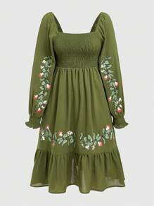 Fairycore Women's Floral Embroidery Bust Shirred Dress