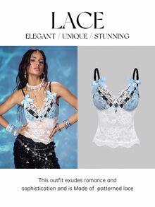 Fairycore Women's Mermaid Lace Patchwork Rhinestones Embroidery Camisole Top, Suitable For Beach Vacation