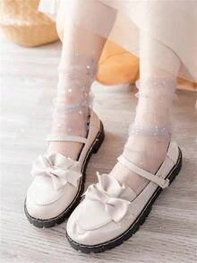 Fairycore Women's Mid-Calf Socks With Star Shaped Sequins