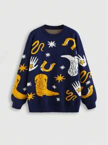 Fairycore Women's Retro Witch Style Boots Motif Pullover Sweater