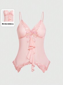 Fairycore Women's Sequined Butterfly Pattern Splice Cami Top With Bow Decoration