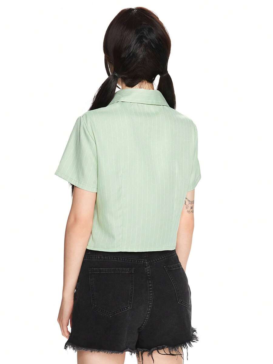 Fairycore Women's Solid Color Patchwork Front Button Short Sleeve Casual Blouse