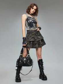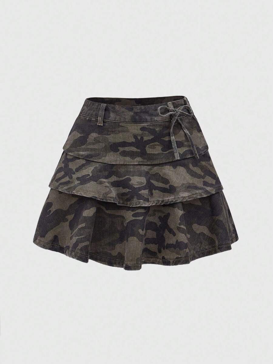 Fairycore Women's Kpop Summer Casual Camouflage Printed Multi-Layer Denim Skirt, School