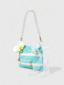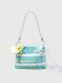 Fairycore Women's Vacation Casual Shell 3D Flower Decor Woven Tote Bag