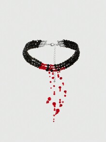 Anime Fall Sweet Gothic Style Blooddrop Tassel Pendant Black Beaded Choker Necklace For Women