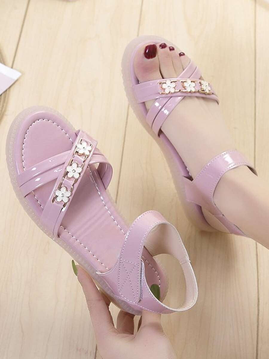 Fashion Pink Ankle Strap Sandals For Women, Flower Decor Cross Strap Hook-and-loop Fastener Sandals