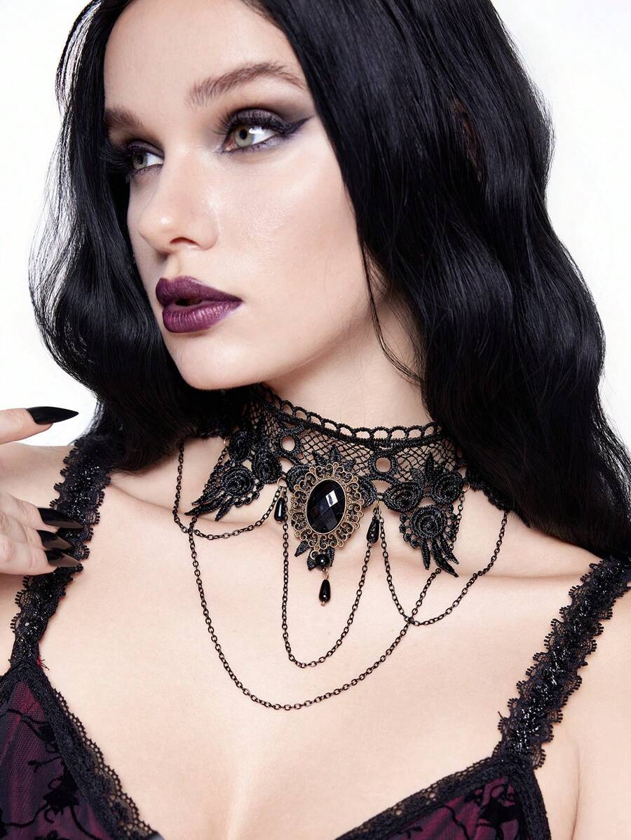 Fashionable Gothic Lolita Style Black Lace Choker Necklace