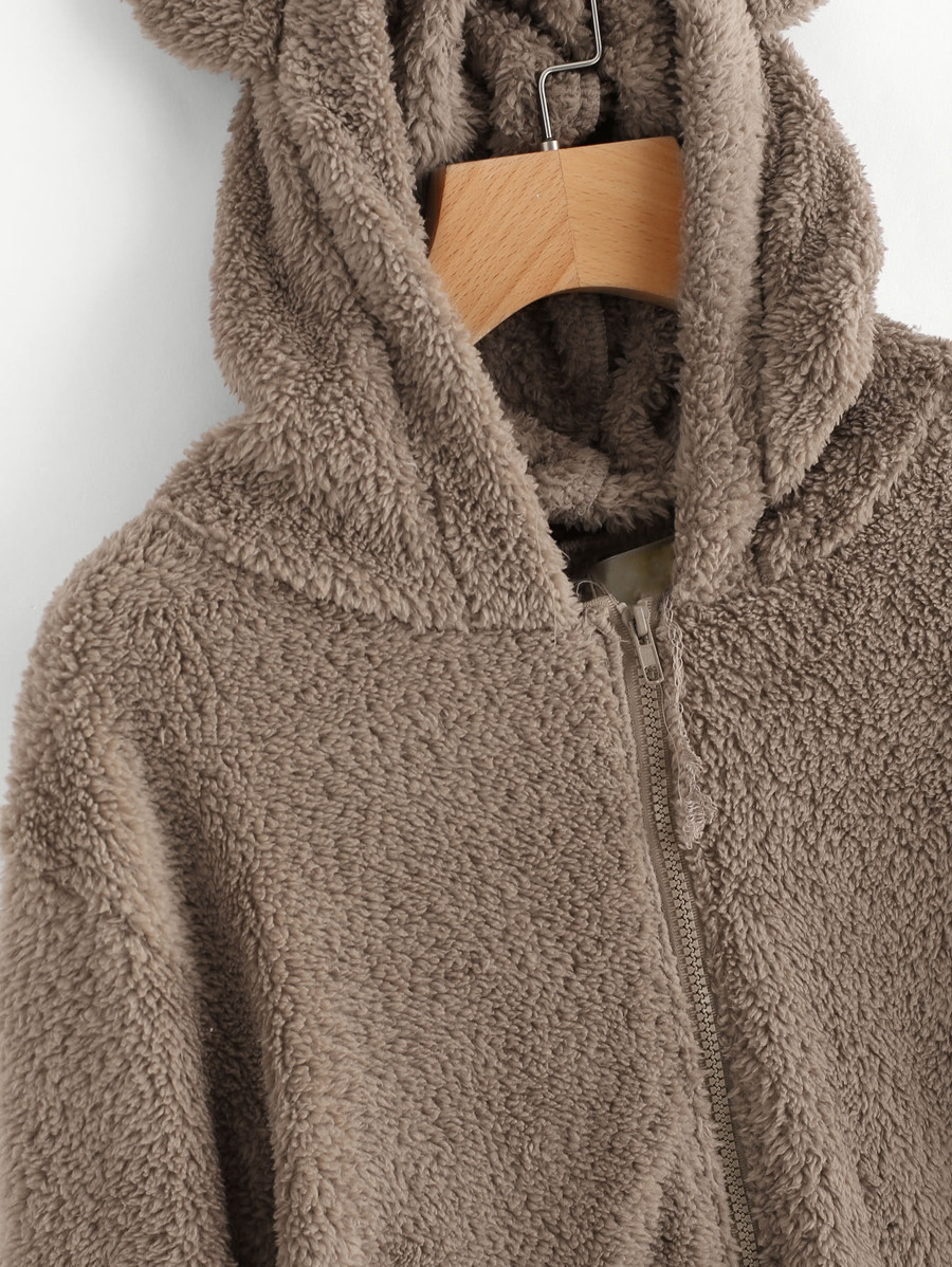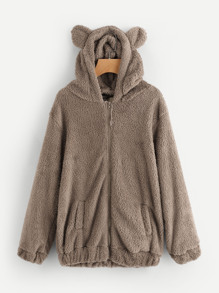 Faux Shearling Hooded Bear Coat
