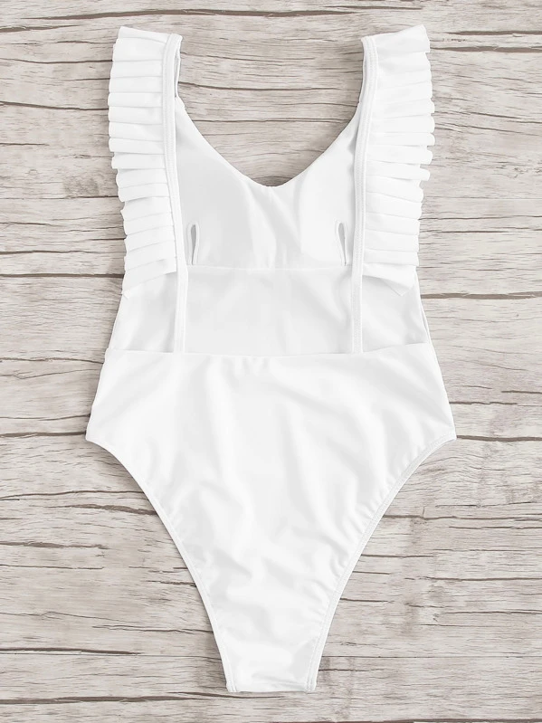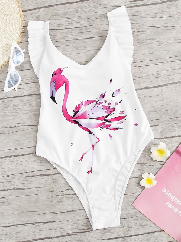 Flamingo Print Ruffle Backless One Piece Swim