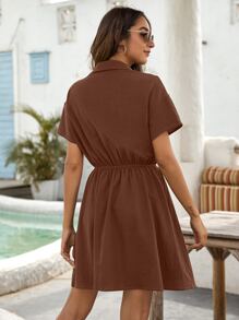 Flap Pocket Drawstring Waist Shirt Dress