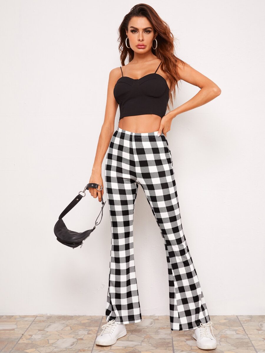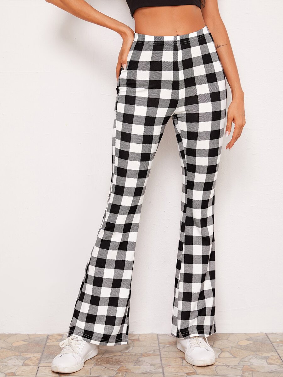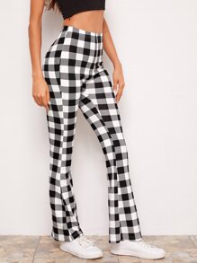 Flare Leg Gingham Print Pants