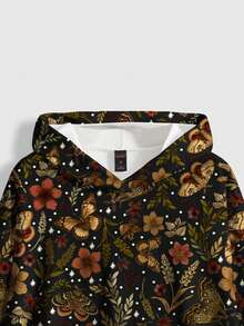 Fairycore Floral, Leaf & Butterfly All-Over Print Loose Fit Hoodie Sweatshirt For Women, Autumn/Winter