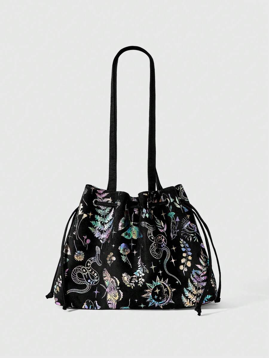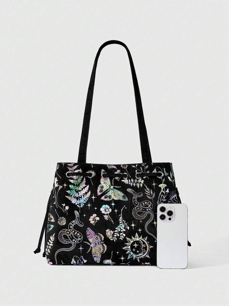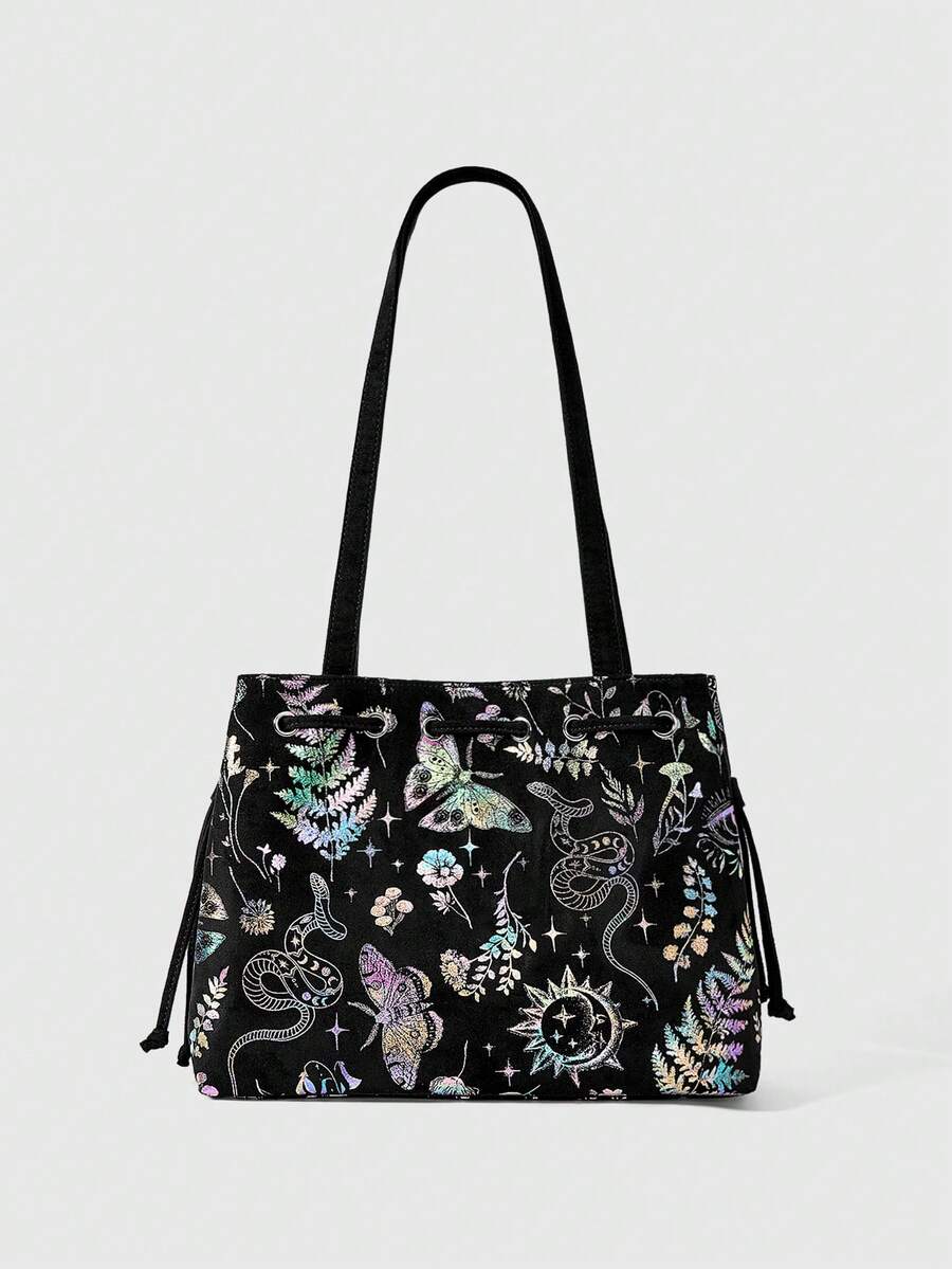 Fairycore Floral Butterfly Jungle Suede Tote Shoulder Bag